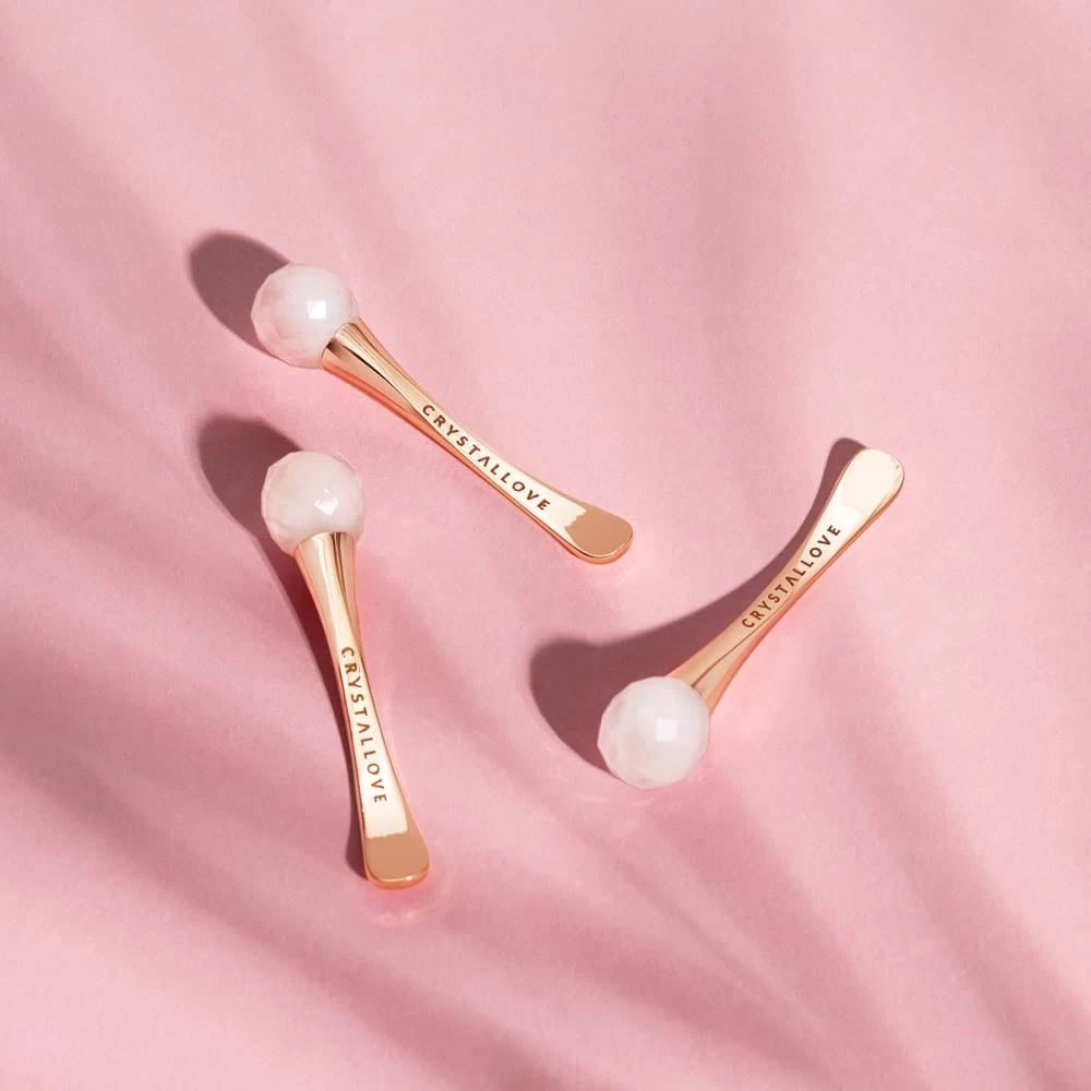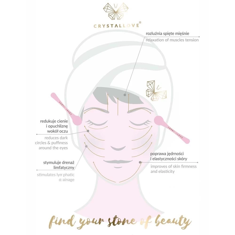 Een stralende huid onder de ogen? Nu is het mogelijk! De 3D oogmassager met rozenkwarts is gemaakt voor mensen die behoefte hebben aan een effectieve verzorging van de tere huid rond de ogen. Het roterende masserende deel is gemaakt van natuurlijk gefacetteerde rozenkwarts. Het is niet alleen bedoeld om de visuele aantrekkingskracht te vergroten, maar ook om het massage-effect te versterken. Het handvat, gemaakt van roestvrij staal in roségoud, is versierd met een gegraveerd CRYSTALLOVE-logo. Het massageapparaat is verpakt in een mooie doos.