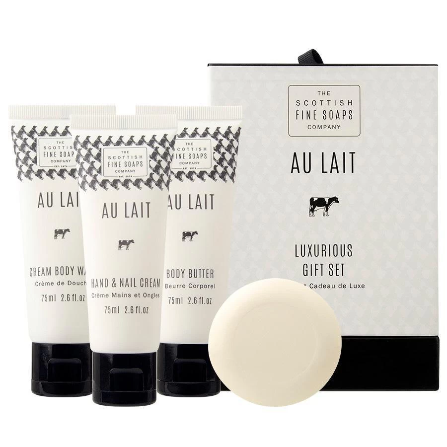 Deze The Scottish Fine Soaps Company Au Lait lichaamsverzorgingsset bevat één Cream Body Wash (75ml), één Hand & Nail Cream (75ml) en één Body Butter (75ml).