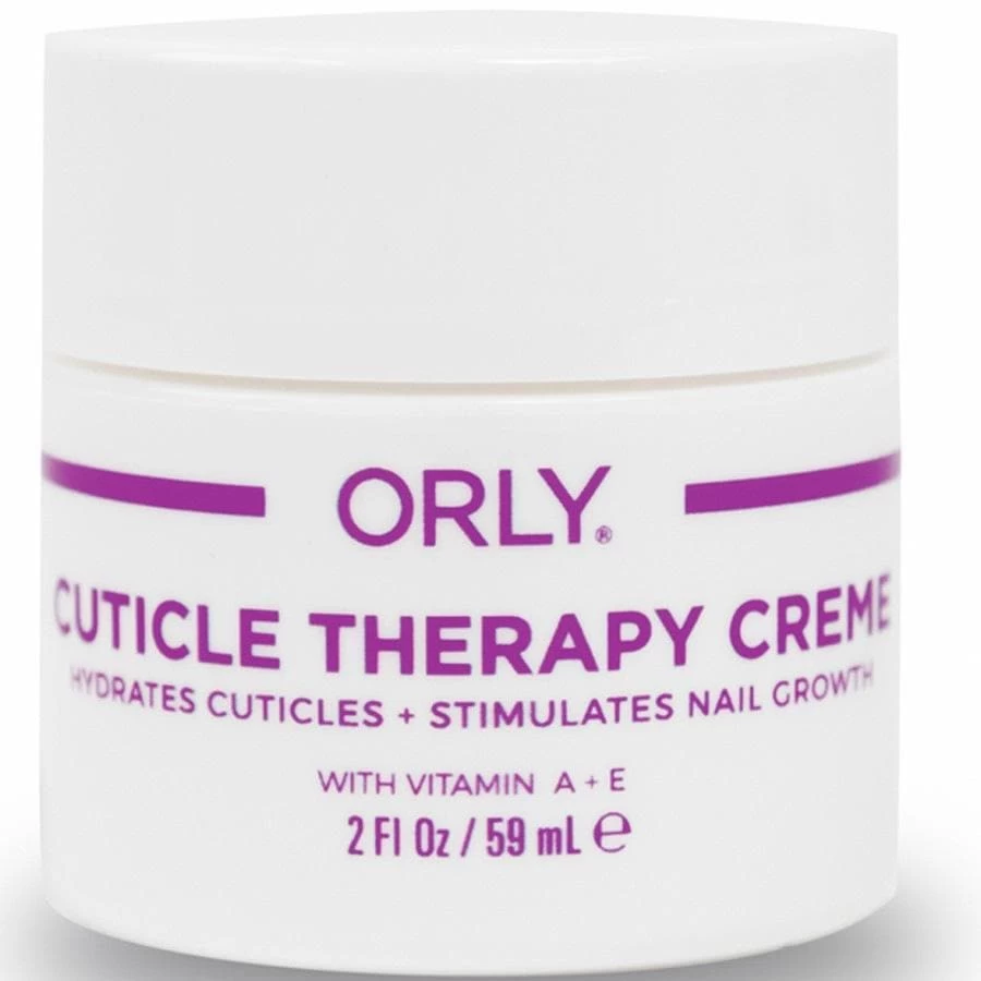 Voor de extreem droge nagelriemen heeft ORLY de Cuticle Therapy Crème. Deze is super geschikt voor de zeer droge, gescheurde nagelriemen. Bevat de antioxidanten A & E en avocado olie. Is ook zeer geschikt voor de ruwe huid op ellebogen, knieën en voeten. Heeft een zachte citrusgeur en is verkrijgbaar in 14ml (tube) en 60ml (pot). Conditioneerd en behandelt ruwe, droge handen, ellebogen en nagelriemen. Een krachtige antioxidant mix van avocado-olie, squaleen en vitamine A & E verbeterd de conditie van de huid en nagelriemen. Beschermd tegen agressieve milieu-elementen. Hydrateerd. Nagelriemen worden gevoed en beschermd, bevordert een sterke, gezonde nagel groei.”