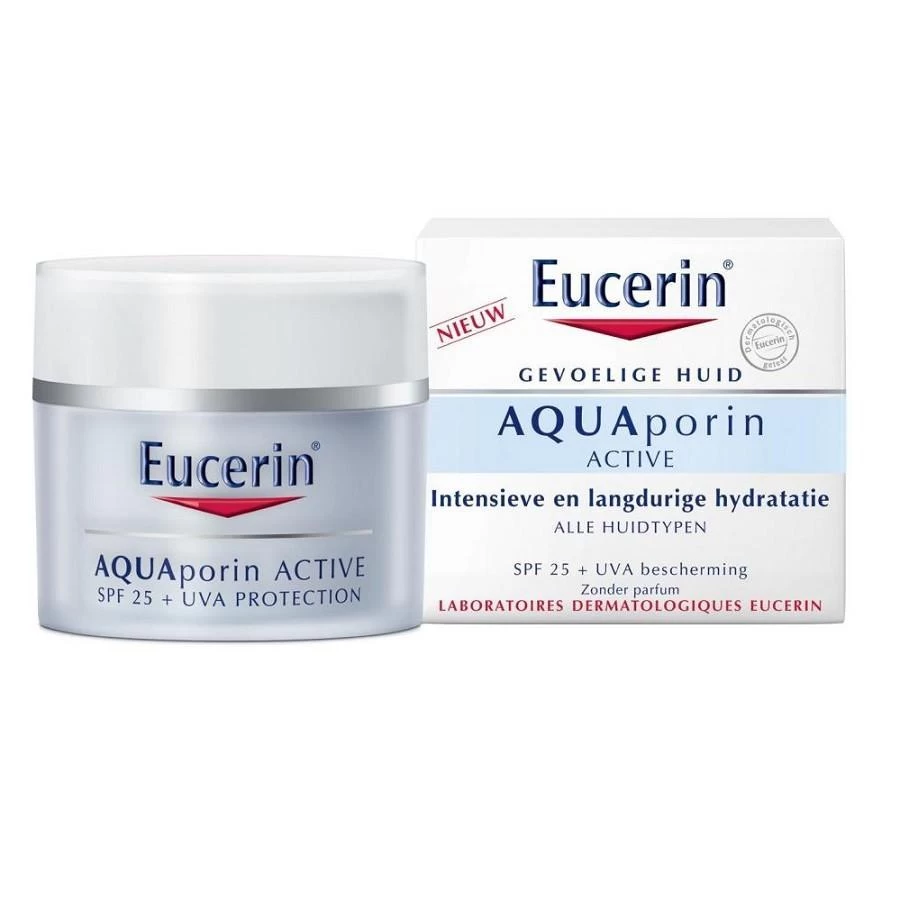 De lichte structuur van Eucerin Aquaporin Active met SPF 25 en UVA-bescherming voor alle huidtypen zorgt voor een intensieve en langdurige hydratatie en trekt snel in de huid. Het herstelt de vochtarme, trekkerige huid en houdt de huid zacht en soepel. SPF 25 en UVA-bescherming bieden totale bescherming tegen schade door de zon.