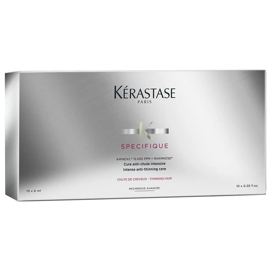 Kérastase Spécifique Cure Anti-Chute à 10 is een intensieve haarkuur tegen haaruitval, die het haar en de hoofdhuid behandelt en haarverlies remt. De haarkuur werkt aan de kwaliteit van nieuwe haren, beschermt het haar tegen oxidatieve stress en verbetert de dichtheid. De innovatieve ingrediënten herstellen de kwaliteit en de soepelheid van de hoofdhuid. Het haar wordt sterker, dikker, krijgt glans en meer volume.
