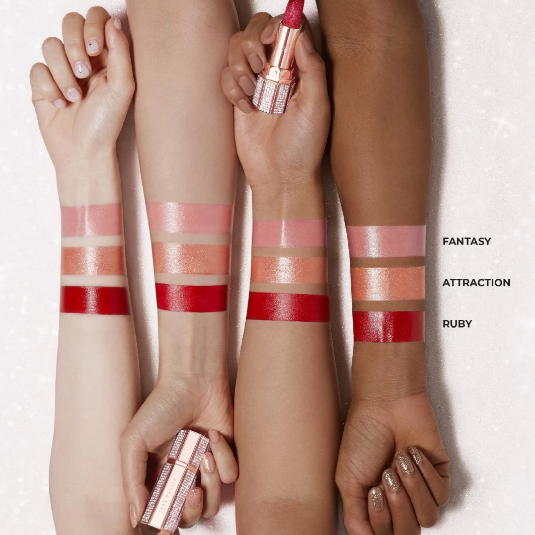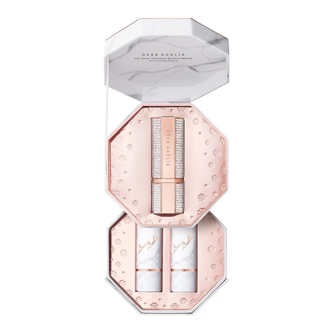 Lip Paradise Crystal Shine Holiday Edition Collection van Dear Dahlia introduceert een exclusieve, met luxe kristallen versierde, navulbare doos met lippenstiften. Deze klantspecifieke doos, aangeboden in een beperkte oplage, bevat drie iconische “Dear Dahlia”-tinten, getopt met sprankelend glitter en verrijkt met voedende “Shea Butter” voor langdurig draaggenot.