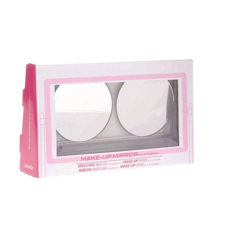 Tweezijdige make-up spiegel met een 5x vergrotende spiegel en een 12x vergrotende spiegel.