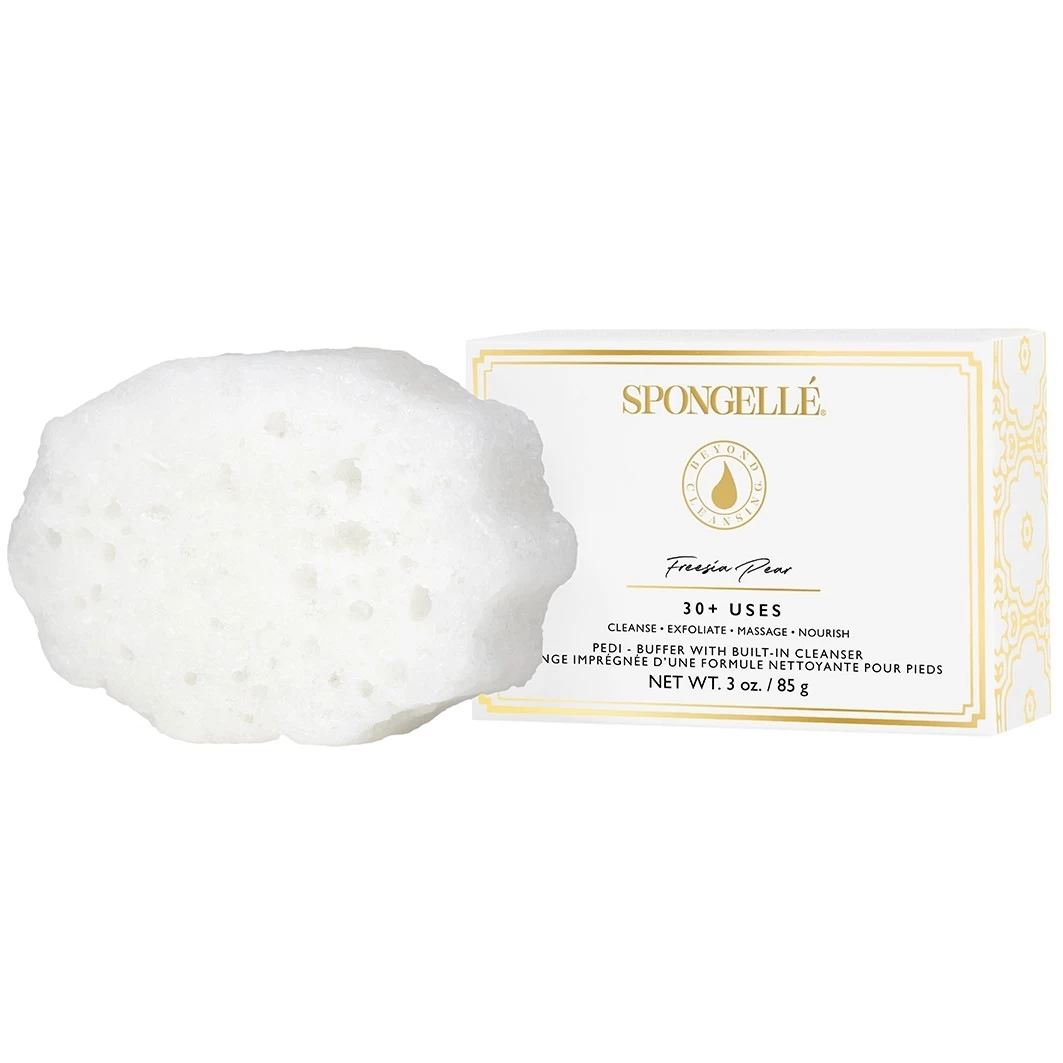 De Spongellé Pedi Buffer Freesia Pear is een unieke innovatie en ontwikkeld om in één beauty-behandeling de voeten te reinigen, te peelen en te verzorgen. Met water verandert de 2-zijdige beauty-spons in een dagelijks schoonheidsritueel voor de voeten dankzij de grondige reiniging met de zachte zijde en de gladmakende peeling met de gestructureerde zijde. De voeten zijn schoon, glad en voelen zacht aan. Met de heerlijke geur vormt de Pedi Buffer Beach Grass een sensatie voor alle zintuigen. Luxe voor huid en geest.