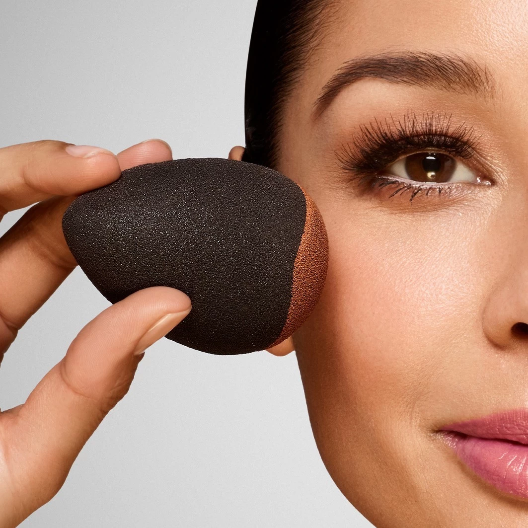 De eivormige spons vormt zich perfect naar de contouren van uw gezicht. Door de smallere bovenkant is het makkelijk om moeilijk bereikbare plekken te bereiken zoals de neus en de ogen. De bredere kant kan worden gebruikt voor grotere oppervlakken zoals het voorhoofd en de wangen.