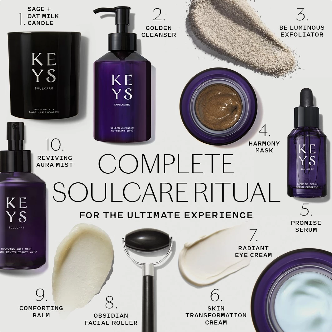 Keys Soulcare’s Radiant Eye Cream, ontwikkeld in samenwerking met een specialist in dermatologie, opent de ogen, stimuleert de geest en herstelt de natuurlijke uitstraling van de huid rond de ogen. De hydraterende formule op basis van peptiden, zonnebloemolie en bladgoud bindt optimaal vocht in de huid en verbetert de zichtbaarheid van fijne rimpels die terug te voeren zijn op een droge huid. Krachtige peptiden zijn de basisbouwstenen van eiwitten zoals collageen, elastine en keratine en ondersteunen zo de natuurlijke regeneratie van het ooggebied, voorzien het van waardevol vocht en geven het vitaliserende verzorging. De voedingsrijke olie uit zonnebloempitten voorziet de gevoelige huid van effectieve antioxidanten en essentiële vetzuren, terwijl bladgoud de natuurlijke balans van de huid onder de ogen herstelt en laat stralen. Het resultaat is een alerte look met een stralende en ontspannen teint.