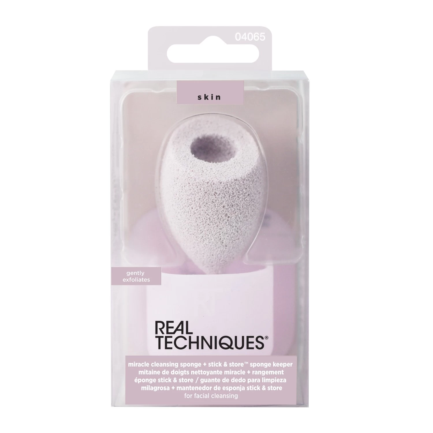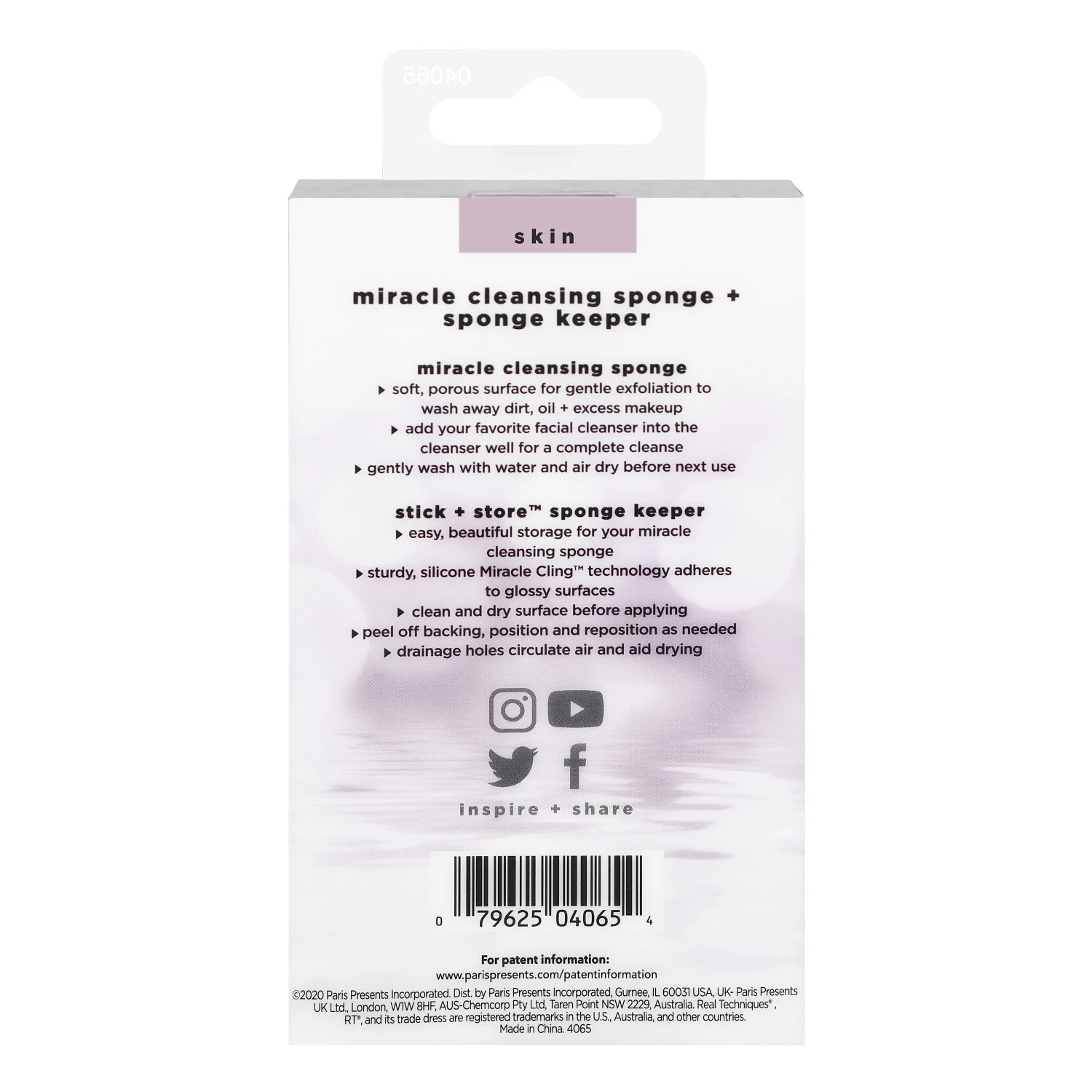 Met de Real Techniques Cleansing Sponge + Keeper verwijdert u make-up, olie en vuil van het gezicht voor een clean & glowy base. Handig te gebruiken door het gat aan de bovenkant. De siliconen Sponge Keeper kleeft aan platte en gladde oppervlakken zoals een spiegel. Ideaal om de spons schoon in te bewaren. Hi healthy, glowy face!