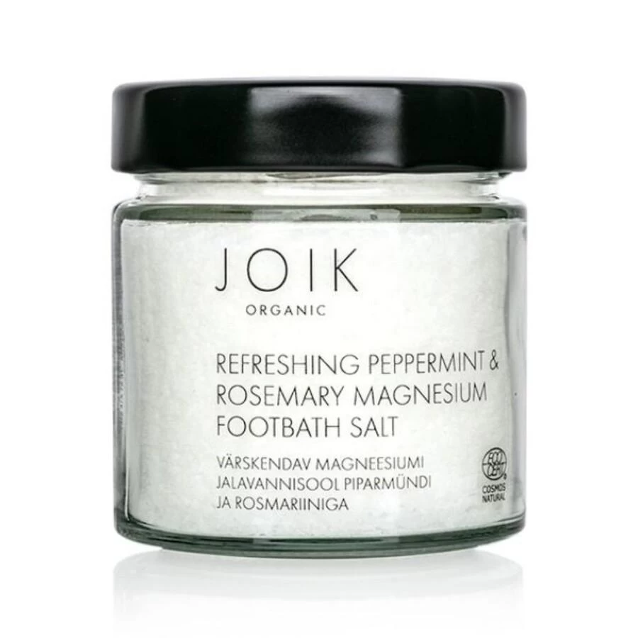 Verfrissend badzout met zeezout en magnesiumzout dat rijk is aan mineralen, voor vermoeide, gezwollen voeten. Biologische pepermunt- en rozenmarijnolie verfrissen en verkoelen na het sporten, een lange dag op de been te zijn geweest of een warme dag.