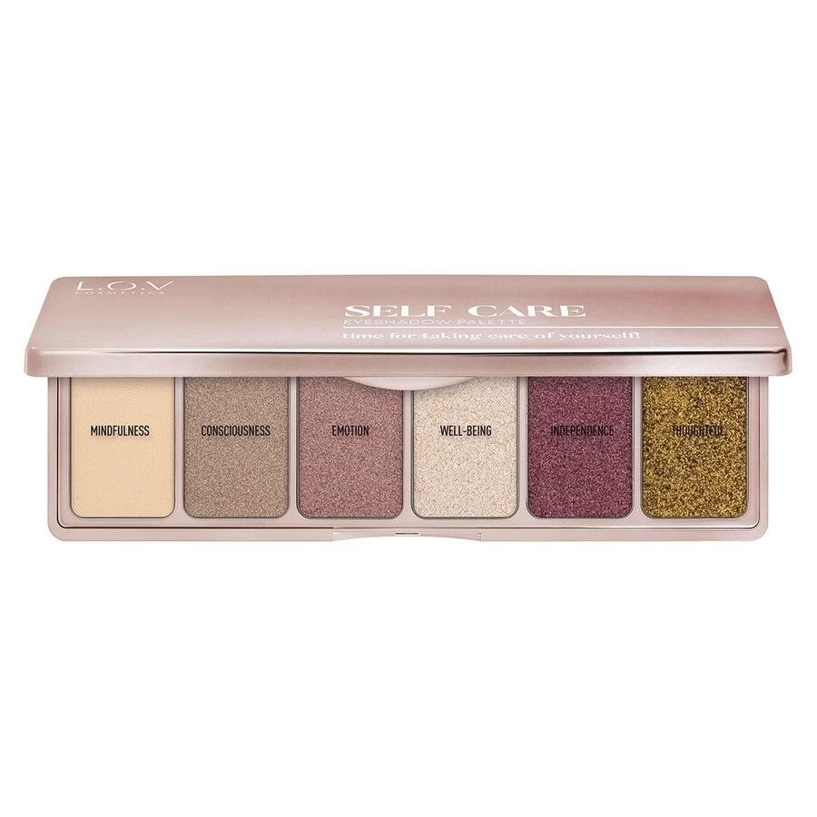 Neem wat tijd voor uzelf en voor de dingen die u gelukkig maken. Te beginnen met dit palette! Het Self Care oogschaduwpalet van L.O.V bevat 6 sterk gepigmenteerde oogschaduw-varianten in roze en bessentinten, die perfect harmoniëren en een romantische uitstraling creëren. De romige textuur in met matte, glanzende en metallic effecten tilt uw oogmake-up op een hoger niveau. Dankzij het handige formaat is het perfect voor onderweg!