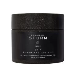 “””De huid is een dynamisch, regeneratief orgaan. Onze huid heeft de juiste balans van voedingsstoffen nodig om de achteruitgang van de cellulaire functie die gepaard gaat met veroudering, de opgehoopte DNA-schade, tegen te gaan en zichzelf te beschermen tegen de ontstekingseffecten van irriterende stoffen uit de omgeving. en andere invloeden om ons heen.Dr.Barbara Sturm heeft haar SKIN SUPER ANTI-AGING-supplementen geformuleerd met voedingsstoffen die gericht zijn op de schoonheidsbehoeften van een ouder wordende huid. Krachtige ingrediĂ«nten zijn onder meer zink en selenium om de huid gezond te houden en te beschermen tegen oxidatieve stress, evenals de anti-aging actieve ingrediĂ«nten postelein, astaxanthine, co-enzym Q10, glutathion en bamboe-extract SKIN SUPER ANTI-AGING ondersteunt de gezondheid van de huid en zorgt voor een gladde, stralende en jonger ogende teint.”””