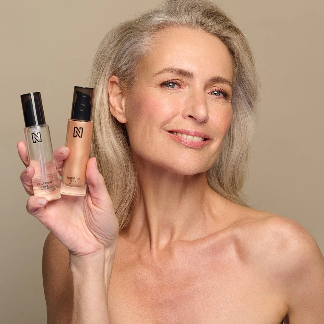 This is all you need! Twee bestsellers in één kit: The Perfect Prime & Glow Kit van N BEAUTY van Nikkie Plessen! De kit bevat de Perfect Wonder Primer en de Glowing Skin Filter in Light/Medium. En je ontvangt ze in deze mooie en praktische N BEAUTY make-up tas!