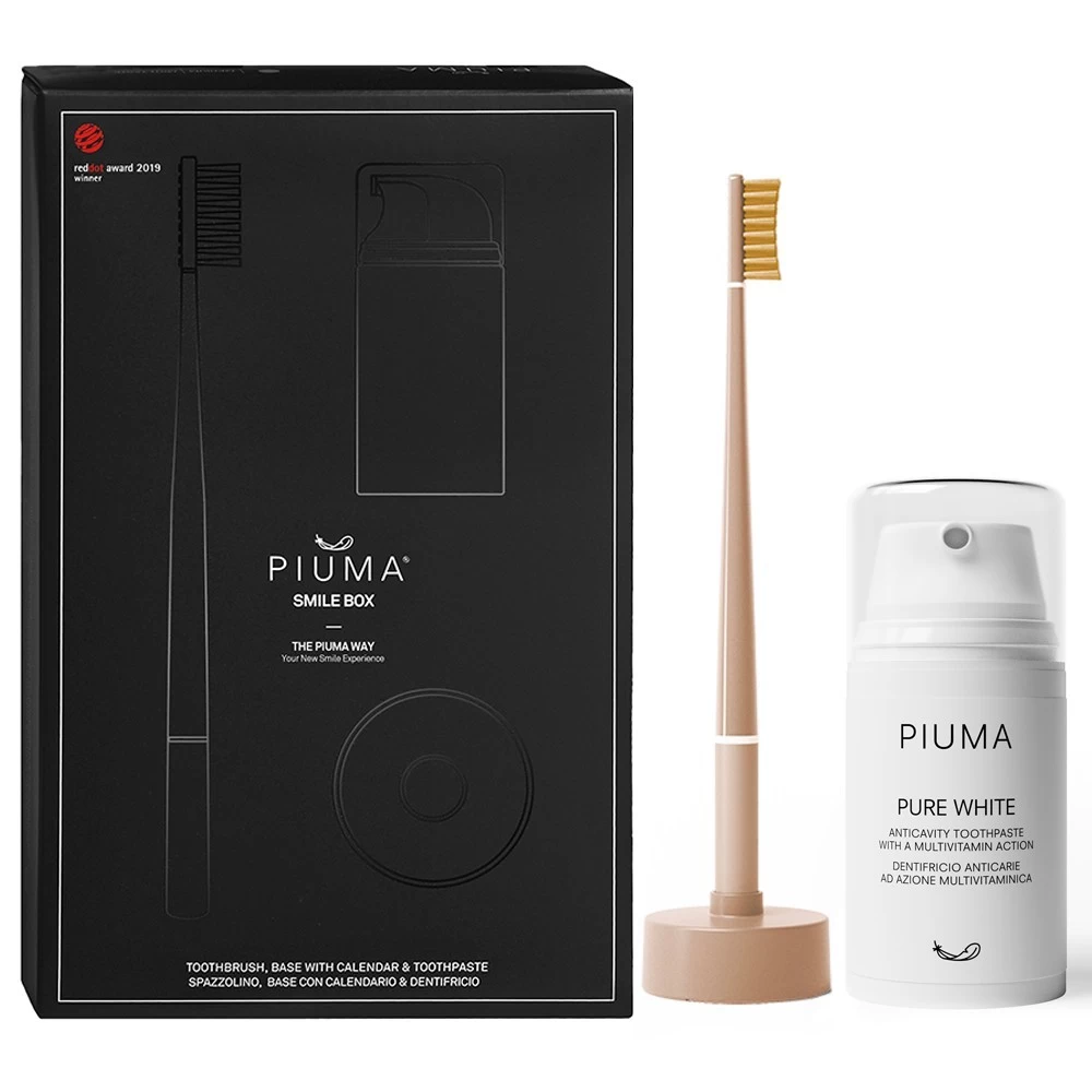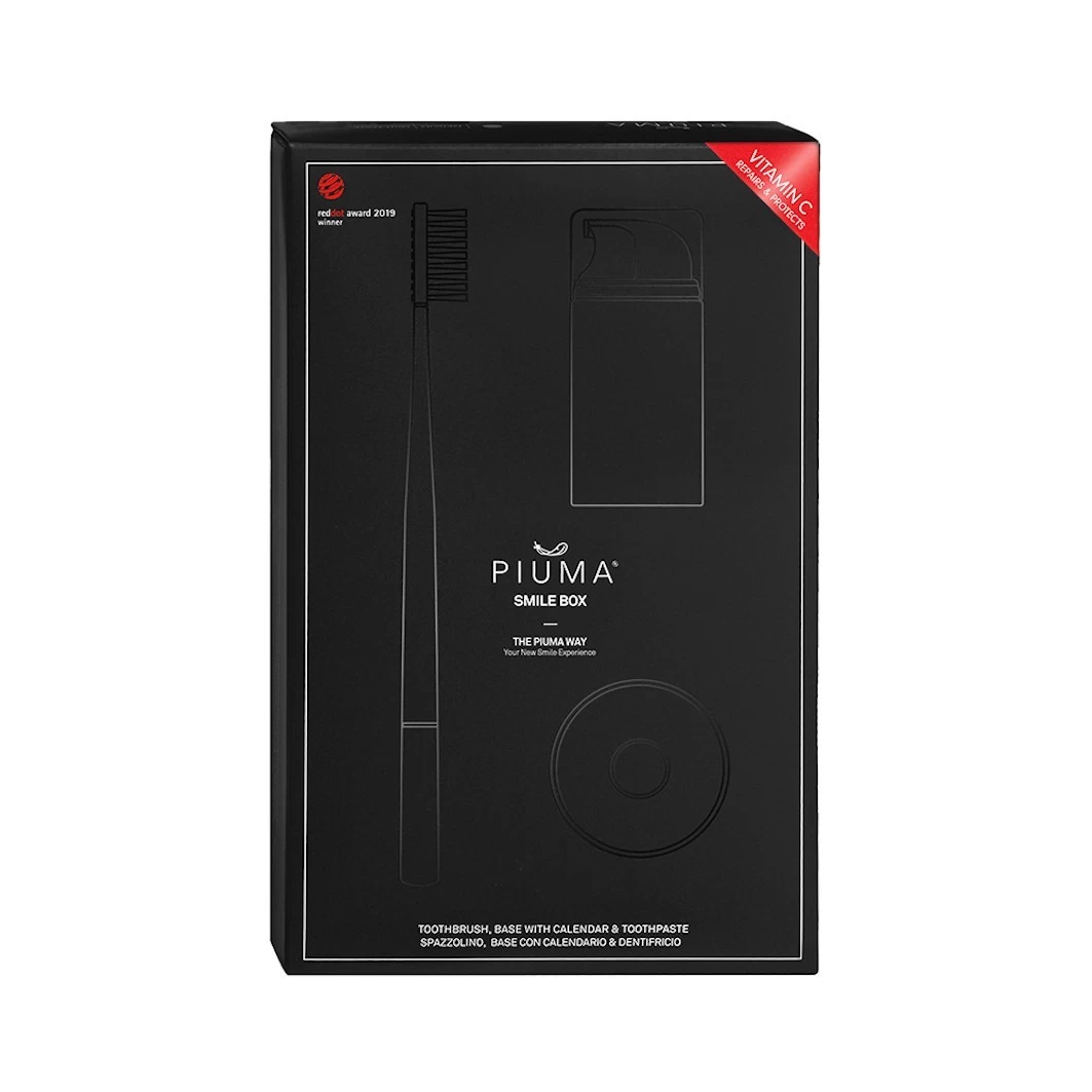 De Piuma Smile Box Vitamin C is een leuke set en bevat een tandenborstel met standaard ontwikkeld met een strak design, gebaseerd op wetenschap en technologie in combinatie met vitamine C. Daarnaast zit er de Pure White tandpasta bij die je tanden reinigt en beschermt tegen gaatjes. Jouw mond verdient nou eenmaal de beste hygiëne en wie wil er nou geen stralende lach?